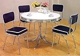 This is a brand new in box 50's Retro Nostalgic Style Round Dining Table with Chrome Plating and Easy to Clean Formica Top in White. This item is modeled after the famous style of the American 1950's Diner that has served so many back in the days. The tubular steel frame of the item is plated with chrome and constructed with quality. Its smooth, strong, and durable surfaces makes it easy to clean and hassle free. The legs of the table includes levelers at each part of the leg that keep it stable on uneven flooring. (The Chairs in the picture are sold separately in our Dining Room > Chairs Section.) (Requires Simple Assembly) Dimensions Measure: 42" Diameter x 31"H- Retro chrome plated table with original base and white top.