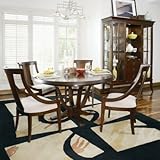 Better Homes & Gardens 838657-TAB-C / 838657_BASE-C / 838637-C Add a bit sophistication to any room with Modern Outlook. This collection offers a sence of modern with lines and traditional roots. Features: -Set includes dining table and four arm chairs. -Modern Outlook collection. -Walnut finish. -Hardwoods with cathedral walnut construction. -Chanted table ends with two 12" leaves. -Chair has shaped arm that ties into the front post and veneered back splat. -Chair has upholstered slip seat. -Arm height: 20".Read Full Product Specification here