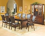 The Capria Dining Room Set by Homelegance is somewhere between contemporary and traditional. Its transitional flavor appeals to both senses. The curved fronts, the rich merlot finish on cherry veneers, and the recessed drawer fronts make this a wonderful choice for your home. The dining tables are available in both leg and trestle options; while chairs come in black vinyl and peat microfiber upholstery.Read Full Product Specification here