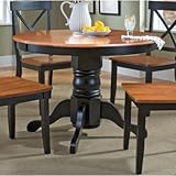 The Home Styles Dining Table is constructed of solid hardwood in a multi-step black and cottage oak finish. It features a round shaped wood top and a pedestal base. Suitable for four, the transitionally styled Home Styles Dining Table is an ideal central fixture in your dining area or kitchen. Features: Dining Table constructed of solid hardwood Black and Cottage Oak finish Round shape Wood top Seats 4 Pedestal base Transitional style Casual dining Ready to assemble Specifications: Overall Dimensions: 30" H x 42" W x 42" D Weight: 75 lbs Shipping Carton Dimensions 1: 11" H x 11" W x 27.75" D Shipping Carton Dimensions 2: 6" H x 46.5" W x 46.5" D Recommended Care: Clean with a soft, damp cloth Use a mild dishwasher soap mixed with water if necessary- Pedestal Table with Cottage Oak Top in Black Finish