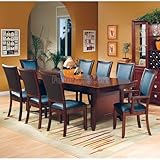 The Capria Dining Room Collection is somewhere between contemporary and traditional. Its transitional flavor appeals to both senses. The curved fronts, the rich merlot finish on cherry veneers and the recessed drawer fronts make this a wonderful choice for your home. Chairs are available in both vinyl and peat microfiber options.Read Full Product Specification here