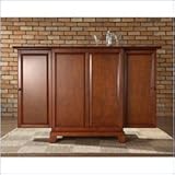 Perfect for cocktail parties, the Newport Expandable Bar Cabinet by Modern Marketing by Modern Marketing is a dynamic piece of furniture. There's storage for your favorite liquors, and it can also be used as a sideboard or buffet during family dinners. Inside the doors, you will find plentiful storage space for spirits, glassware, and a host of other bar items. The center cabinet features 16 bottle wine storage, utility drawer, hanging stemware storage, and extra space for a variety of other barware. Assembly level/degree of difficulty: Moderate.- Color: Classic Cherry