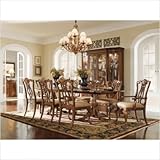 Universal Furniture 518658-TAB / 518658-BASE The Kentwood Double Pedestal Dining Table features a fancy faced flat mahogany cut table top with a primavera short grain veneer border, and sits on urn shaped pedestals with three seeded sweeps with brass toe caps. With the ability to extend to 110" with the use of two removable 18" leaves, this double pedestal dining table will seat all your guests in style. Features: -Sun-faded Mahogany finish. -Select hardwoods with mahogany veneers and short grain primavera borders. -Table top of fancy faced flat cut swirl mahogany with primavera short grain veneer border. -Urn shaped pedestals with three reeded sweeps with brass toe caps. -Two 18" leaves extend table length to 110". -Overall Dimensions: 30" H x 74" W x 44" D.Read Full Product Specification here