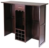 Winsome Newport Wine Bar with Expandable Counter... wow your guests with this collapsible bar! With space for up to nine wine bottles and all your serviceware, this Newport Wine Bar Counter provides you with plenty of space for spirits! Safely store glasses with the integrating hanging glass slots, and even keep liquor bottles down low in the open cabinet. Has a small drawer, too, for cocktail books, bottle openers, corkscrews and more! Best of all, it's made from real-wood construction in walnut finish for incredible durability and style for years to come. Easy assembly... hardware included. Measures 18 x 50 x 40" and weighs 71 lbs. Buy Now! Winsome Newport Wine Bar with Expandable Counter- Expandable wine bar with foldout leaves transforms compact storage into full-service entertainment station