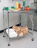 Chrome and Stainless Folding Work Table. The 304 Stainless Steel solid top provides a suitable work surface when preparing foods. The heavy duty casters allow for easy mobility. The lower ventilated chrome storage shelf with chrome posts will keep everything at your fingertips! Â Weighs approximately 40 pounds. Can support up to 500 evenly distributed pounds. When opened, the table measures 24" x 30" x 38" Tall When closed, the unit folds to only 3" in width! Assembly level/degree of difficulty: Easy.- Color: Chrome/Stainless
