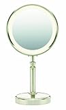 Nothing beats a professional lighted mirror to bring makeup application and other skin-care procedures to maximum polish. this double-sided pedestal mirror offers regular and 10x magnification. the halo lighting around the perimeter of the mirror provides soft, glare-free lighting for optimum clarity. lighted with a fluorescent bulb, it is 30-percent brighter and consumes 60-percent less energy than the average lighted mirror. the 8.5-inch diameter is plenty of surface to view every detail of your face. enjoy flexible viewing with the pivoting head that rotates 350-degrees. the satin nickel finish gives this mirror a sleek, timeless look that blends with any style or décor. youâll always be ready for your close-up with the right lighting and extreme magnification from the be116t double sided fluorescent mirror.- 8.5-inch diameter two-sided mirror with 1x and 10x magnification