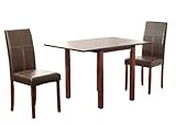 This dining set will add a class and sophistication to any dining area. Set includes a double drop leaf table and 2 Bettega parson chairs. The drop leaf dining table is constructed of rubber wood. This set also comes with a pair of dark brown faux leather parsons chairs which are constructed of rubber wood and have a stylish brown stitching. The table measures 27-1/2-inch deep (extendable to 47-1/2-inch deep with two 9.8-inch drop leaf on both sides of table) x 29-1/2-inch wide x 29.12-inch high. The chair measures 21.25-inch deep x 17-inch wide x 37-inch high. Requires some assembly.- 3-piece dining set