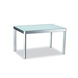 CS/351-VQ(P95)(N) Table Shown with Frosted Glass Top Features: -Available with tempered Frosted Glass.-Table seats up to four when closed and six when extended. Color/Finish: -Satin Finished Steel frame. Assembly Instructions: -View theAssembly Instructions. Dimensions: -Extendable: Table width is 35.5'', and 59.13'' when extension is used.-Extends from 35.5'' - 59.13'' W.